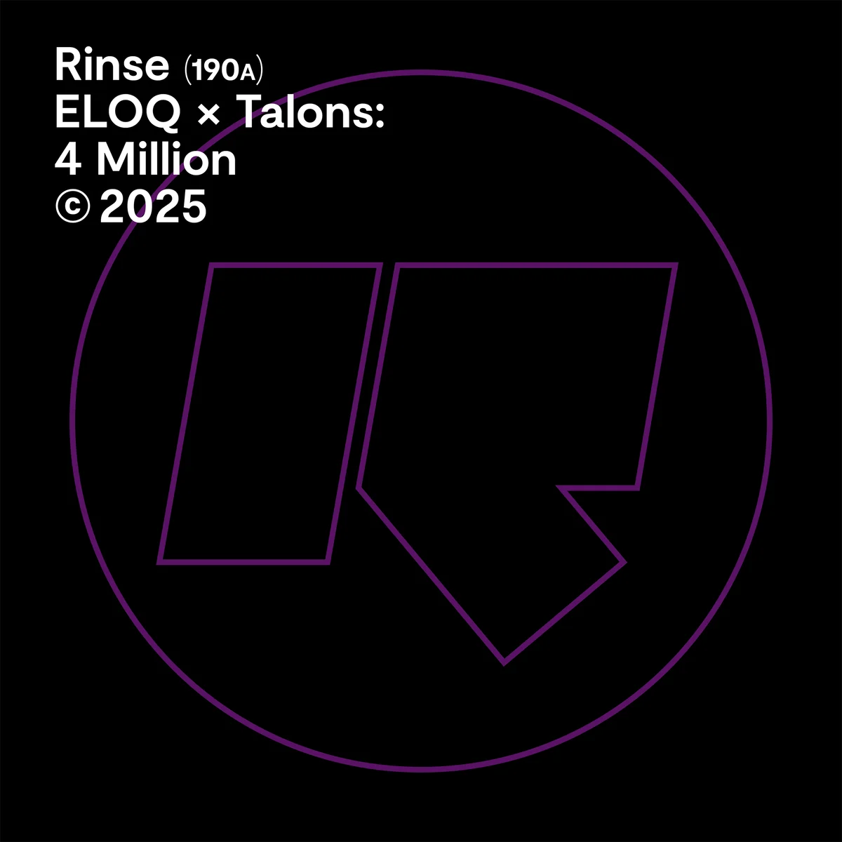 Denmark’s Garage prodigy ELOQ teams up with Talons for high-octane weapon ‘4 Million’, coming out on Rinse. Known for his genre-blurring sound and heavy productions, ELOQ brings his signature energy to this collaboration -melding skippy 2-step rhythms, weighty basslines, and infectious vocals. A staple in the sets of heavyweights like Main Phase and Interplanetary Criminal, ELOQ continues to push boundaries. Whether it’s gun-finger triggers or euphoric peak-time energy, this track is built to shell down the dance.